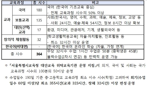 '서울형 한국어 예비학교'는 학력인정 대안교육 위탁교육기관으로서 예비학교에서의 출결과 교육 내용 모두 학생이 소속되어 있는 재적교에 그대로 반영된다.