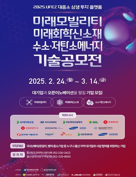 (아름다운교육신문) 울산경제자유구역청은 ‘2025년 울산경제자유구역(UFEZ) 대중소 상생 투자 기반(플랫폼) 공모전’을 개최한다고 밝혔다.