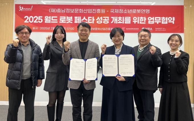(아름다운교육신문) (재)충남정보문화산업진흥원이 국제청소년로봇연맹과 '충청남도 로봇 산업 발전 및 충남 방문의 해 성공'을 위한 업무협약(MOU)을 지난 21일 체결했다고 밝혔다. 협약식에는 김곡미 진흥원장과 노희진 로봇연맹 회장이 참석한 가운데 다양한 협력 방안을 논의했다.