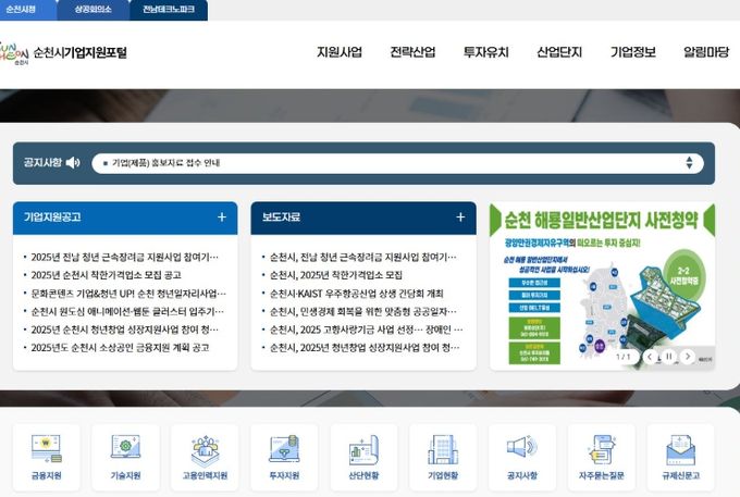 시 관계자는 “기업지원포털을 통해 기업의 애로사항 원스톱 처리와 소통을 활성화할 계획”이며, “앞으로도 지역 기업이 성장할 수 있도록 기업 맞춤형 지원 정책을 적극 발굴하여, 기업하기 좋은 도시 순천을 만들겠다”고 밝혔다.