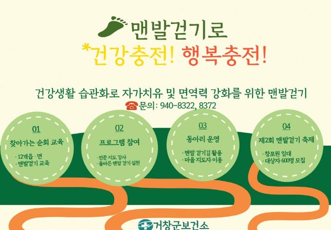 거창군보건소는 지역 주민들에게 다양한 걷기 실천 프로그램을 제공하기 위해 이번 순회 교육을 시작으로, 4월부터 만성질환자 등을 대상으로 한 맨발 걷기 프로그램을 운영할 예정이다.