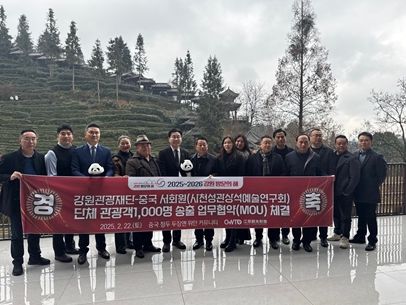 (아름다운교육신문) 강원관광재단은 지난 2월 22일 중국 청두에서 중국 서화원(中国书画院)과 업무협약(MOU)을 체결했다고 밝혔다. 이번 협약을 통해 강원특별자치도와 중국 문화·예술계의 협력을 강화하고, 강원 관광 활성화를 위한 전략적 파트너십을 구축했다.