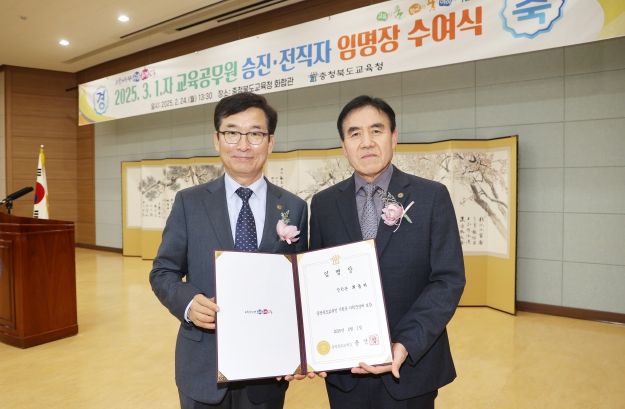 (아름다운교육신문) 충청북도교육청은 24일, 도교육청 화합관에서 2025년 3월 1일자로 승진, 전직하는 교원 및 교육전문직원을 대상으로 임명장 수여식을 실시했다.