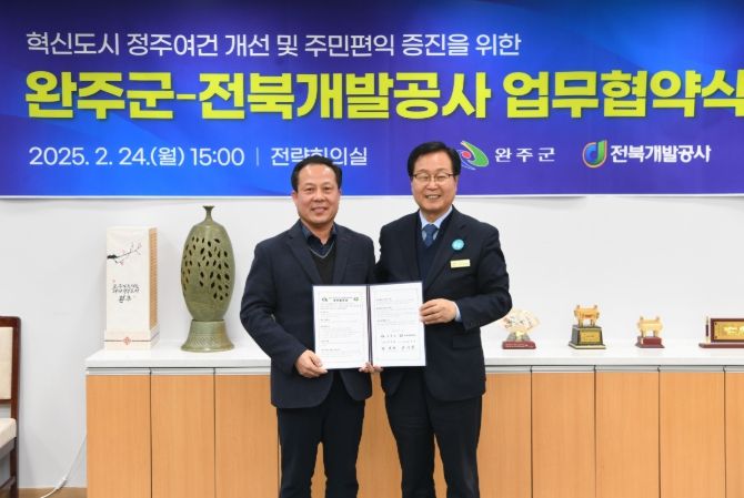 (아름다운교육신문) 완주군과 전북개발공사가 혁신도시 정주여건 개선 및 주민편익 증진을 위한 업무협약을 체결했다.