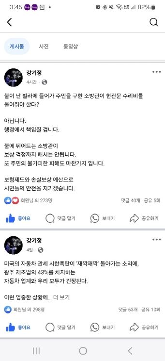 강기정 광주광역시장은 24일 사회관계망서비스(SNS)에 “불에 뛰어드는 소방관이 보상 걱정까지 해서는 안된다. 주민의 불가피한 피해도 마찬가지이다”며 이같이 밝혔다.