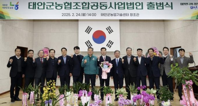 태안군은 지난 24일 태안군농업기술센터 창조관에서 가세로 군수 등 군 관계자와 군의원, 농협 관계자, 지역 농업인 등 200여 명이 참석한 가운데 ‘태안군농협조합공동사업법인 출범식’을 개최했다고 밝혔다.