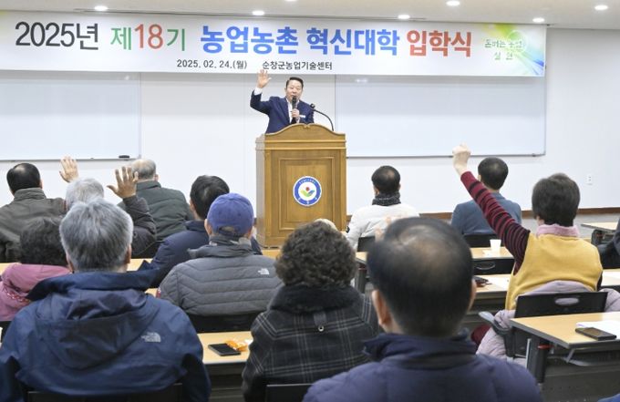 (아름다운교육신문) 순창군이 지난 24일 지역 농업의 미래를 이끌어갈 핵심 인재를 양성하기 위한 ‘농업농촌혁신대학’입학식을 갖고 본격적인 교육 과정에 돌입했다.