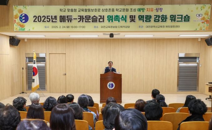 (아름다운교육신문) 대전시교육청은 2월 24일 대전교육정보원 강당에서 대전 교육공동체의 촘촘하고 체계적인 마음건강 지원을 위한 에듀-카운슬러, 또래코칭 지원단 위촉식 및 역량강화 연수를 실시했다고 밝혔다.