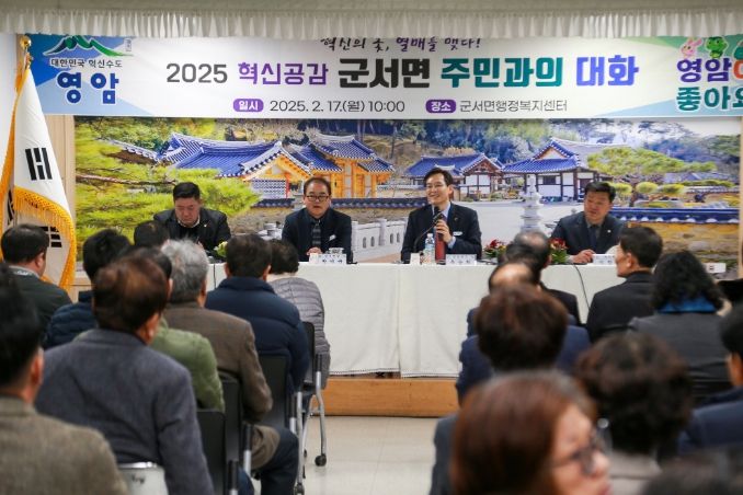 (아름다운교육신문) 영암군이 24일 미암면을 마지막으로 ‘혁신의 꽃, 열매를 맺다’를 구호로 이달 14일부터 각 읍·면을 찾아가 개최한 ‘2025 혁신공감 주민과의 대화’를 성황리에 마쳤다.