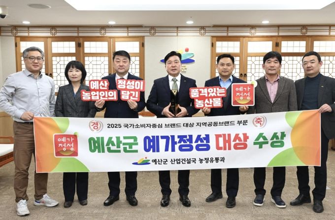 (아름다운교육신문) 예산군 농특산물 공동브랜드 ‘예가정성’이 브랜드 및 선호도 측면에서 소비자에게 높은 평가를 받아 지난해에 이어 올해도 ‘2025 국가 소비자중심 브랜드(지역공동브랜드 부문) 대상’ 수상의 영예를 안았다.