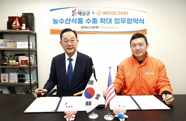 (아름다운교육신문) 해남군은 현지시간 24일, 미국 로스앤젤레스 소재의 농식품 전문판매사인 울타리(WooltariUSA)와 농식품 수출 확대를 위한 업무협약을 체결했다.