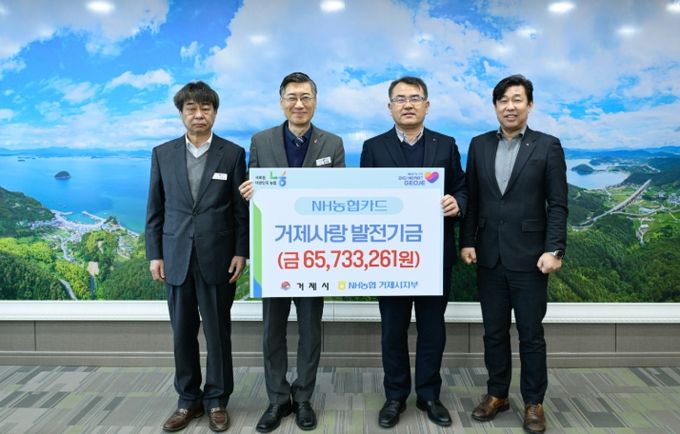 (아름다운교육신문) 거제시는 25일 NH농협은행 거제시지부로부터 2024년 제휴카드 적립 기금 65,733천원을 전달받았다고 밝혔다.