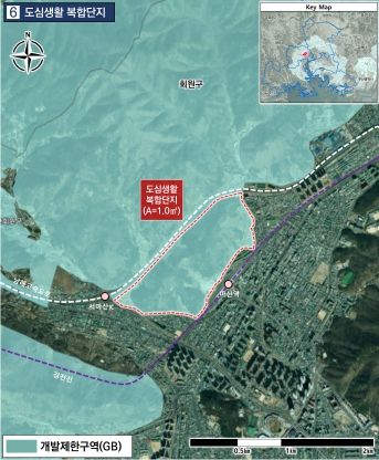 마산역 미래형 환승센터와 모빌리티를 연계한 최적의 접근성을 활용해 도심 내 생활물류 지원체계 구축, 외국인 유학생·근로자를 위한 지원시설과 인구구조 변화에 따른 교육 및 공공서비스를 제공하기 위하여 마산회원구 합성동 일원에는 도심생활 복합단지를 조성하여 역내 경제‧문화‧교통의 활력을 불어넣는 지역거점으로 조성할 계획이다.