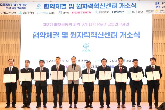(아름다운교육신문) 경주‧울산‧포항 해오름동맹도시와 한국수력원자력이 25일 포항공대에서 열린 원자력혁신센터 개소식에서 연구개발 공동연구 협약식을 가졌다.