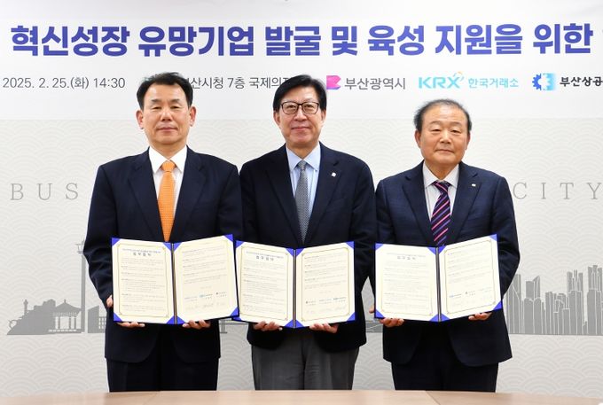 (아름다운교육신문) 부산시는 오늘(25일) 오후 2시 30분 시청 국제의전실에서 한국거래소(KRX), 부산상공회의소와 '부산 지역 혁신성장 유망기업 발굴 및 육성 지원을 위한 업무협약'을 체결한다고 밝혔다.