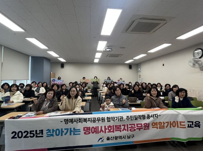 (아름다운교육신문) 울산 남구는 25일 선암호수노인복지관 생활지원사를 대상주민밀착형 종사자들을 대상으로 ‘찾아가는 명예사회복지공무원 활동가이드 교육’실시했다.