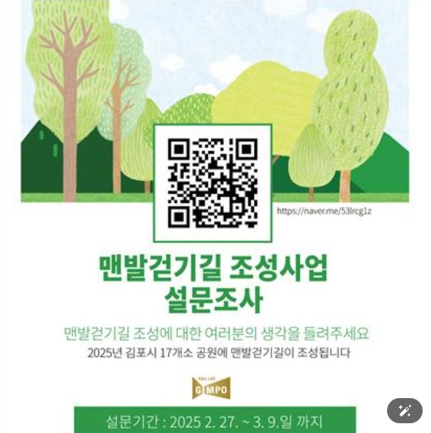 설문은 누구나 참여할 수 있으며, QR코드는 김포시 홈페이지 및 공식 SNS에서 확인할 수 있다.