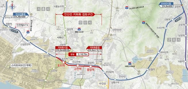 선정구간은 안산시 초지역에서 중앙역에 이르는 약 5.12㎞ 구간이다. 지하화가 진행되면 초지역·고잔역·중앙역과 이와 연결되는 철도가 지상에서 지하로 이전되고, 이에 따라 철도 상부에는 폭 160m, 총면적 약 71만 2천㎡ 규모의 새로운 부지를 확보할 수 있게 된다. 지상철도 지하화로 소음과 진동 감소, 상부부지를 활용한 상업·문화 녹지 복합공간의 조성, 지역 경제 활성화와 교통 연계성 개선을 통해 도시의 지속 가능한 발전을 기대할 수 있다.