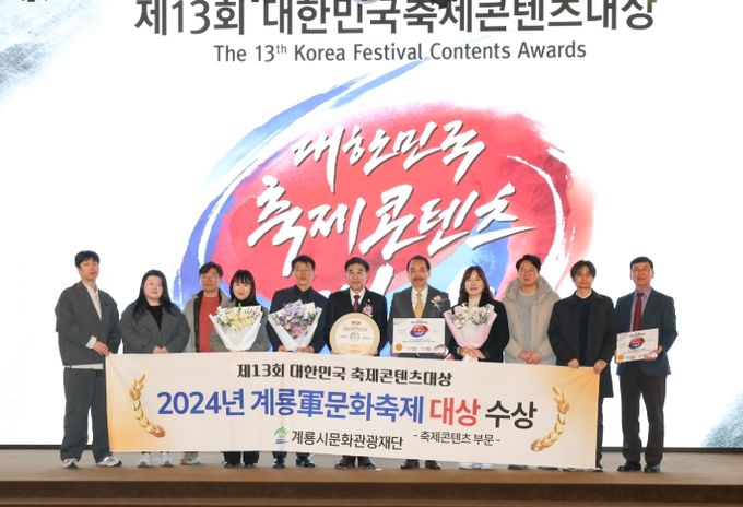 (아름다운교육신문) 계룡시는 지난 25일 서울 용산 피스엔파크 컨벤션(전쟁기념관 內)에서 열린 제13회 ‘2025대한민국축제콘텐츠대상’시상식에서 ‘계룡군(軍)문화축제’가 축제콘텐츠 부문 대상을 수상했다고 밝혔다.