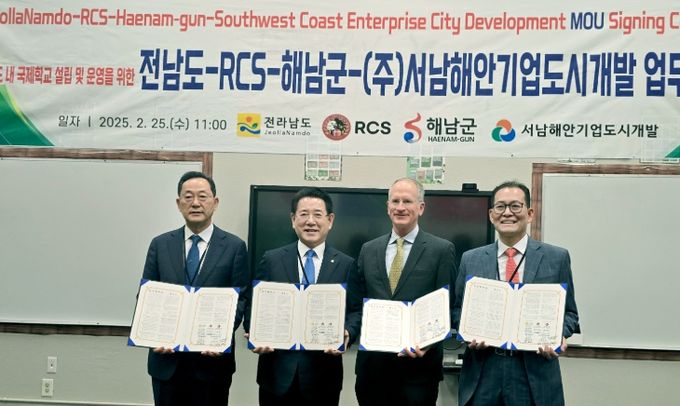 (아름다운교육신문) 전라남도는 25일(현지 시간) 미국 명문 사립학교인 레드랜즈 크리스천 스쿨(Redlands Christian School·RCS)과 해남 구성지구 솔라시도에 외국교육기관 설립을 위한 업무협약을 했다.