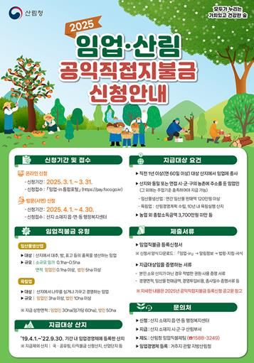 (아름다운교육신문) 여수시가 오는 3월 1일부터 4월 30일까지 2025년 임업‧산림 공익직접지불금 신청을 접수한다.