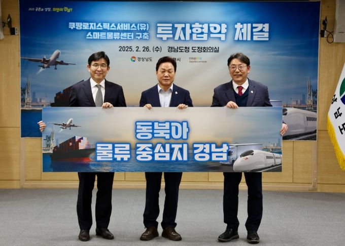 (아름다운교육신문) 김해시는 경상남도, 쿠팡로지스틱스서비스(유)와 26일 오후 2시 경상남도 도정의원실에서 1,930억 원 규모 투자협약을 체결했다고 밝혔다. 이날 협약식에는 홍태용 김해시장을 비롯해 박완수 경남지사, 투자기업 대표인 홍용준 대표이사가 참석했다.