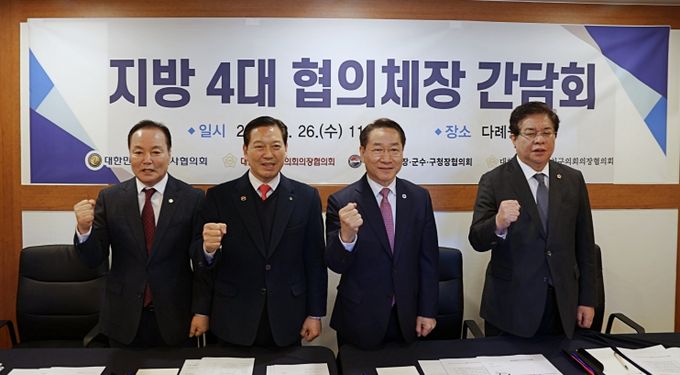 (아름다운교육신문) 대한민국시장·군수·구청장협의회를 비롯한 지방4대 협의체는 2월 26일 인천 송도의 다례원에서 '지방4대 협의체장 간담회'를 개최했다.