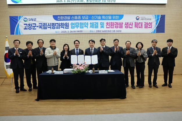 고창군과 식량과학원은 친환경쌀과 가루쌀 재배 농업인에 대한 신품종 종자보급 및 실증시범포 운영, 현장컨설팅, 전문교육 등을 추진하며 상호 교류를 통한 현장 연구와 협력을 강화하기로 했다.