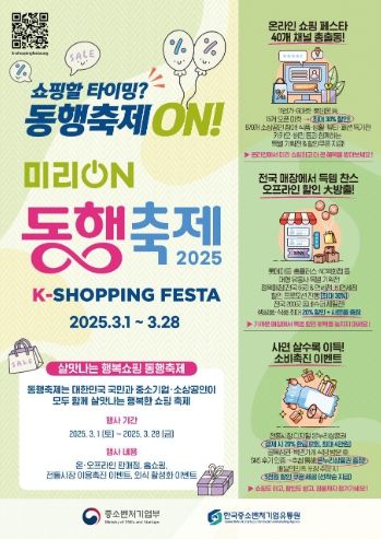 (아름다운교육신문) 중소벤처기업부는 초봄과 새학기를 맞아 소비 진작과 내수 활성화를 분위기 조성을 위해 내달 1일부터 28일까지 ‘미리 온(ON) 동행축제’를 개최한다고 밝혔다.