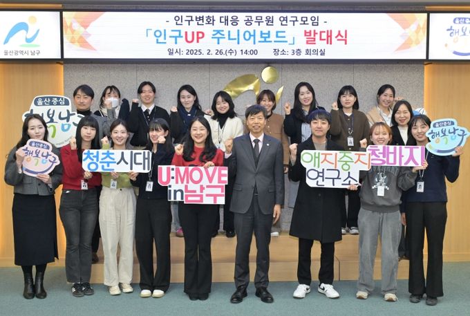(아름다운교육신문) 울산 남구는 26일 남구청 3층 회의실에서 공무원 정책연구모임 ‘인구UP 주니어보드’ 발대식을 개최하고, 구정 발전을 위한 참신한 아이디어 발굴에 나섰다.