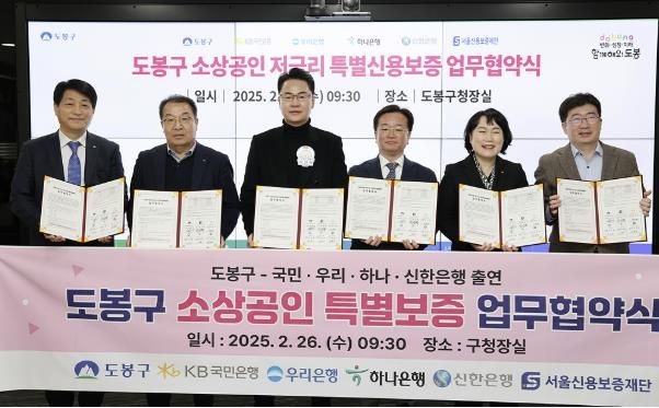 구는 2월 26일 국민은행, 우리은행, 하나은행, 신한은행, 서울신용보증재단과 이 같은 내용을 담은 '도봉구 소상공인 저금리 특별신용보증 업무협약'을 체결했다고 밝혔다.
