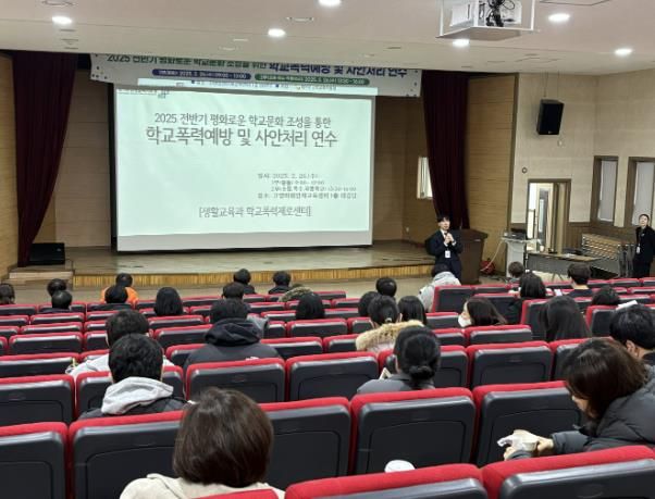 (아름다운교육신문) 경기도고양교육지원청은 지난 2025년 2월 26일, 고양미래인재교육센터 1층 대강당에서 '2025 전반기 평화로운 학교문화 조성을 위한 학교폭력 예방 및 사안처리 연수'를 개최했다. 이번 연수는 초·중·고 및 특수·각종학교의 학교폭력 관련 업무 담당자를 대상으로 진행됐으며, 학교폭력 예방교육 강화와 사안처리 역량 제고를 목적으로 기획했다.