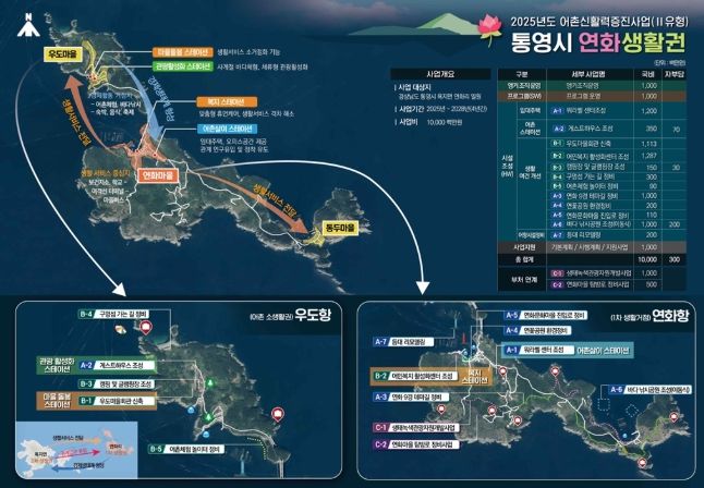어촌신활력 증진사업(유형2)은 생활 서비스 기반 구축을 통한 유입 인구 정착, 생활 사회간접자본(SOC) 시설 확충을 통한 편의시설 확보 등 어촌에 활력을 불어넣는 사업으로, 연화생활권 어촌신활력 증진사업(유형2)은 2025년부터 4년간 100억원의 사업비를 투입해 마을돌봄 스테이션, 관광활성화 스테이션, 복지스테이션, 어촌살이 스테이션 및 S/W 사업 등을 추진할 예정이다.