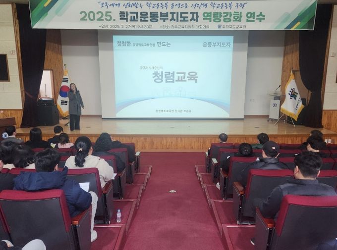 (아름다운교육신문) 충청북도교육청은 27일, 초·중·고 학교운동부지도자 약 260명을 대상으로 청주교육지원청 강당에서 2025학년도 학교운동부지도자 역량강화 연수를 진행했다.