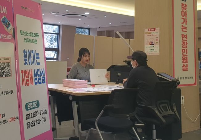 (아름다운교육신문) 대전 서구는 관내 대단위 신축 아파트인 용문동 ‘둔산더샵엘리프’의 입주민을 위해 찾아가는 지방세 상담실을 운영한다고 지난 26일 밝혔다.