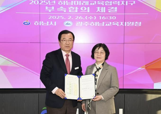 (아름다운교육신문) 경기도광주하남교육지원청과 하남시는 26일, 하남미래교육협력지구 부속합의서를 체결했다. 이번 합의서는 상호 존중과 신뢰를 바탕으로 광주하남교육지원청과 하남시가 함께 협력하여 지역 교육 발전을 위해 힘을 모은다는 중요한 의미를 지닌다.