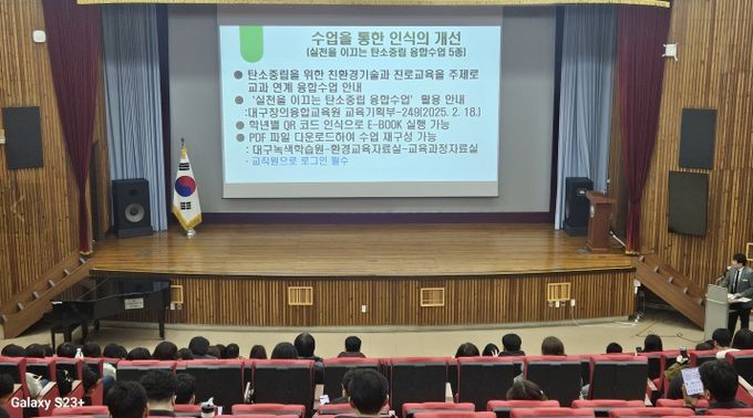 한편, 대구시교육청은 2월 27일 오전 10시, 대구창의융합교육원 시청각실에서 실천학교 운영 방향을 설명하고 지난해 운영 사례 등을 안내하기 위해 각 학교별 환경교육 담당 교원 170여 명을 대상으로 ‘2025학년도 생태전환교육 실천학교 운영 설명회’를 개최한다.