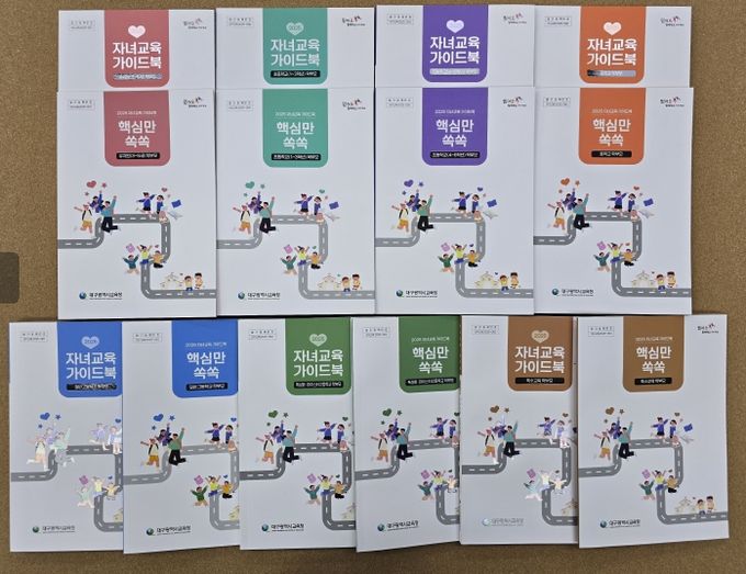 대구시교육청의 ‘자녀교육 가이드북’은 2013년 제작 이후 변화하는 교육 환경에 대응해 올해로 13번째 개정·발간 되며, 자녀의 성장단계 별 필요한 최신 정보들을 담아 ▲유치원, ▲초등학교(1~3학년), ▲초등학교(4~6학년), ▲중학교, ▲일반고등학교, ▲특성화․마이스터고등학교, ▲특수교육 등 총 7종으로 구성되어 있다.