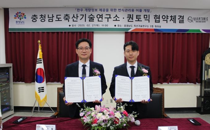 협약에 따라 도와 퀀토믹은 기존 혈통 정보 위주의 개량 어플에서 한 단계 더 나아가 한우유전체분석 정보를 포함한 정보를 농가에 제공할 계획이다.