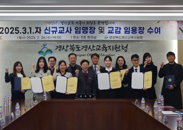 (아름다운교육신문) 경상북도경산교육지원청은 2025년 2월 26일 교육지원청 5층 회의실에서 2025년 3월 1일자로 임용되는 관리직 교육공무원 임용장과 신규교사 임명장을 수여했다.