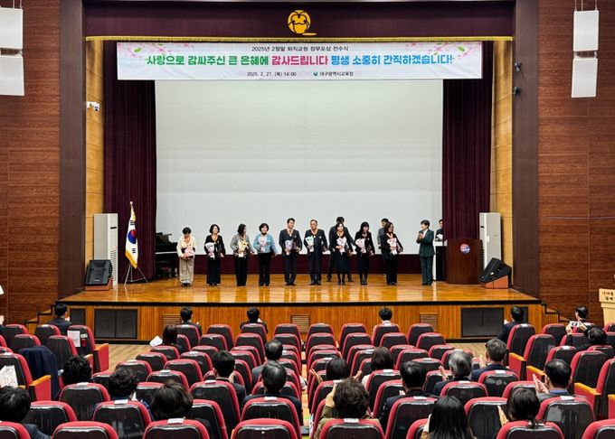 (아름다운교육신문) 대구시교육청은 2월 27일 오후 2시에 시교육청 행복관에서 교육 발전에 기여한 공․사립 퇴직교원 178명에 대한 2025년 2월말 퇴직교원 정부포상 전수식을 개최한다.