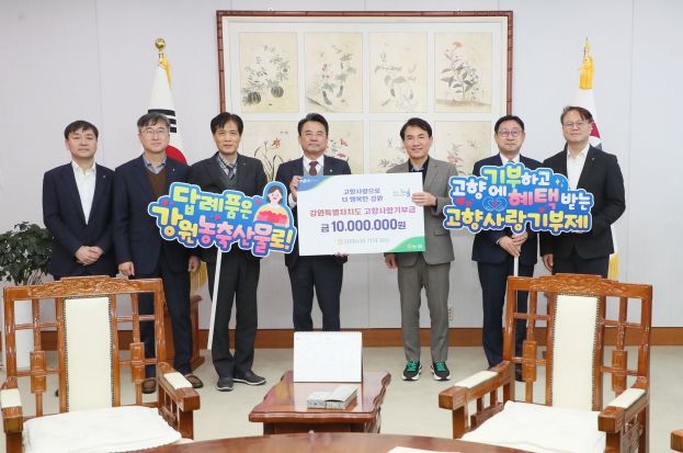 (아름다운교육신문) 농협중앙회 강원본부가 2월 27일 강원특별자치도청을 방문해 김진태 강원특별자치도지사에게 고향사랑기부금을 전달했다.