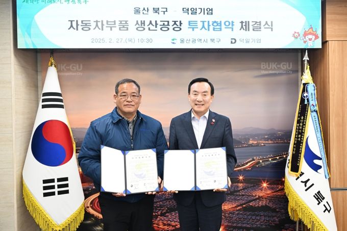 (아름다운교육신문) 울산 북구는 27일 북구청장실에서 자동차 부품업체인 덕일기업과 투자협약을 체결했다.