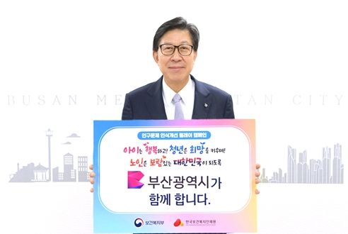 (아름다운교육신문) 박형준 부산시장은 저출생과 고령화 등 인구구조 변화로 인한 문제를 알리고 사회적 인식을 개선하기 위한 '인구문제 인식개선 릴레이 캠페인'에 동참했다.