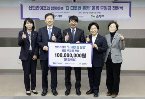 이날 전달식은 김미경 은평구청장을 비롯해 이영종 신한라이프 사장, 김현훈 서울특별시사회복지협의회장 등 관계자 13명이 참석했다. 신한라이프는 지역사회 복지사업 추진을 위해 후원금 1억 원을 전달했다.