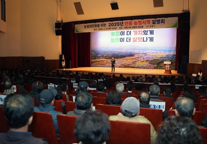 (아름다운교육신문) 안동시는 2월 27일 안동시 대동관 영남홀에서 ‘2025년 안동 농정시책 설명회’를 성공적으로 개최했다. 이번 설명회는 800여 명의 농업인과 농업관계자가 참석한 가운데, 지속 가능한 안동농업을 위한 소통과 협력의 장이 됐다.