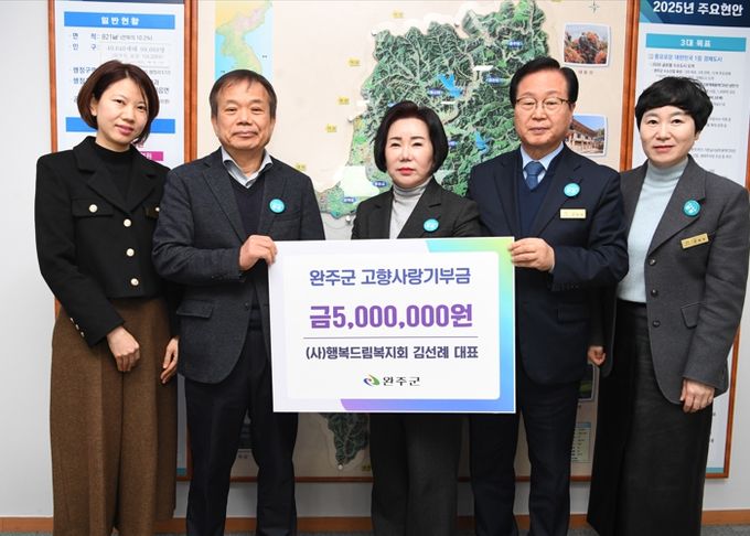 유희태 완주군수는 “김선례 대표의 따뜻한 마음과 나눔의 실천이 지역사회에 큰 감동을 주고 있다”며 “기부금은 주민들의 복지 증진과 지역발전을 위해 소중히 사용하겠다”고 감사 인사를 전했다.