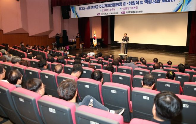 (아름다운교육신문) 완주군은 완주향토예술문화회관에서 완주군 주민자치연합회장 이·취임식 및 역량강화 세미나를 열었다.