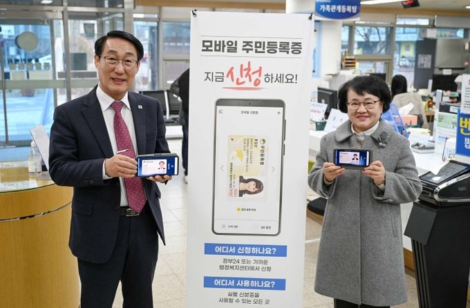 (아름다운교육신문) 홍성군이 ‘모바일 주민등록증’발급을 새롭게 시작하며, 발급 첫날인 지난 28일 이용록 홍성군수와 조광희 부군수는 홍성읍 행정복지센터를 방문하여 나란히‘홍성군 제1호‧제2호 모바일 주민등록증’을 발급받아 눈길을 끌고있다.