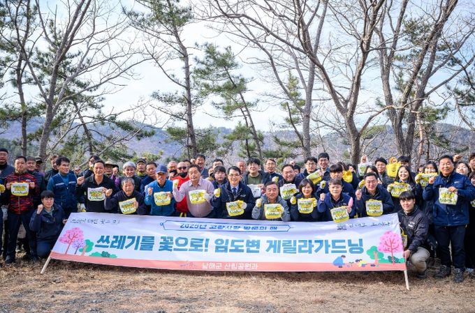 (아름다운교육신문) 남해군은 임도변에 방치된 쓰레기를 수거하고 무단 쓰레기 투기를 방지하기 위해 지난 2월 27일 남면 소재 임도에서 ‘게릴라가드닝’ 행사를 추진했다.